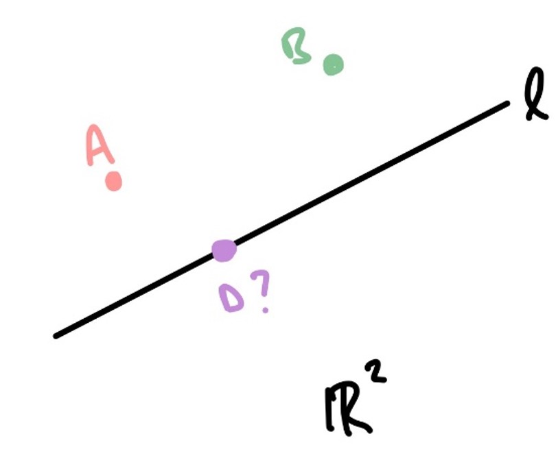 Find a point \(D\in\mathbb{R}^2\) such that \(||AD||+||DB||\) is minimised.