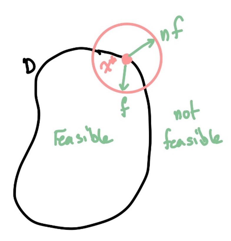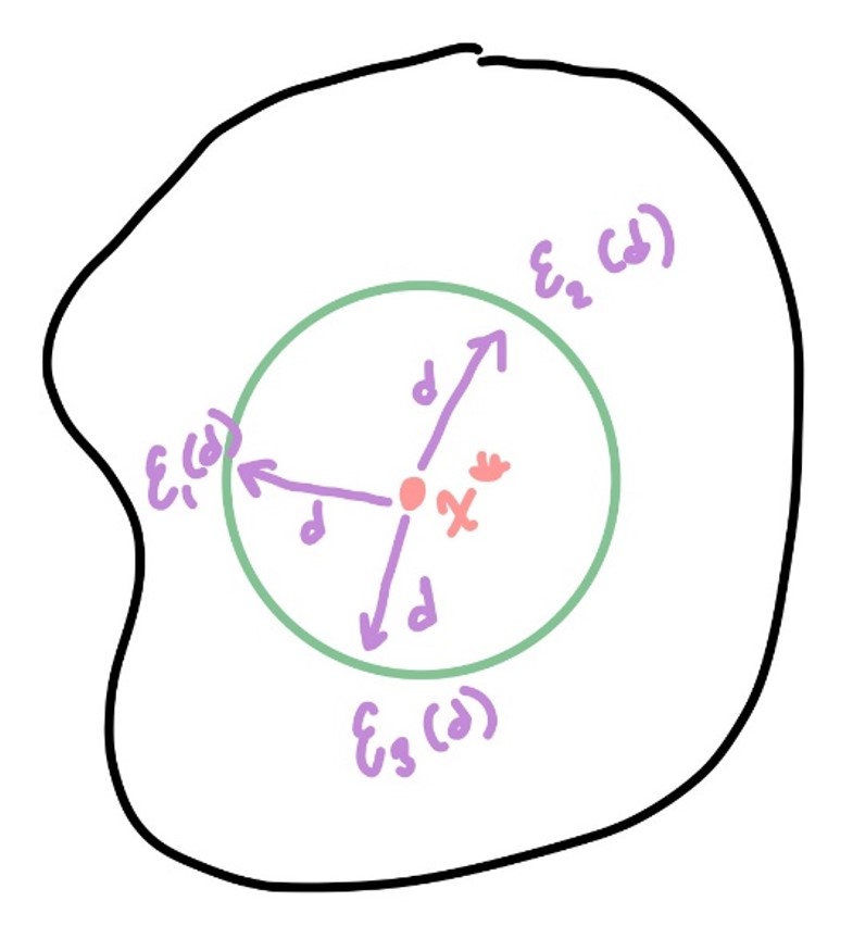 where \(x\in\mathbb{S} = \{x\mid ||x-x^*||\leq \varepsilon\}\), \(\alpha>0\), \(\varepsilon>0\) small enough such that \(f(x^*)\leq f(x) \ \forall x\in\mathbb{S}\) that are feasible.