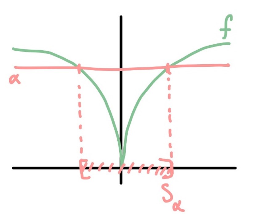 We claim that this set is also bounded: Suppose otherwise, then there is a sequence \(||x_n||\rightarrow\infty\). Then, using coercivity \(|f(x)|\rightarrow\infty\) on this sublevel set, which is a contradiction! Thus, the sublevel set is also bounded.