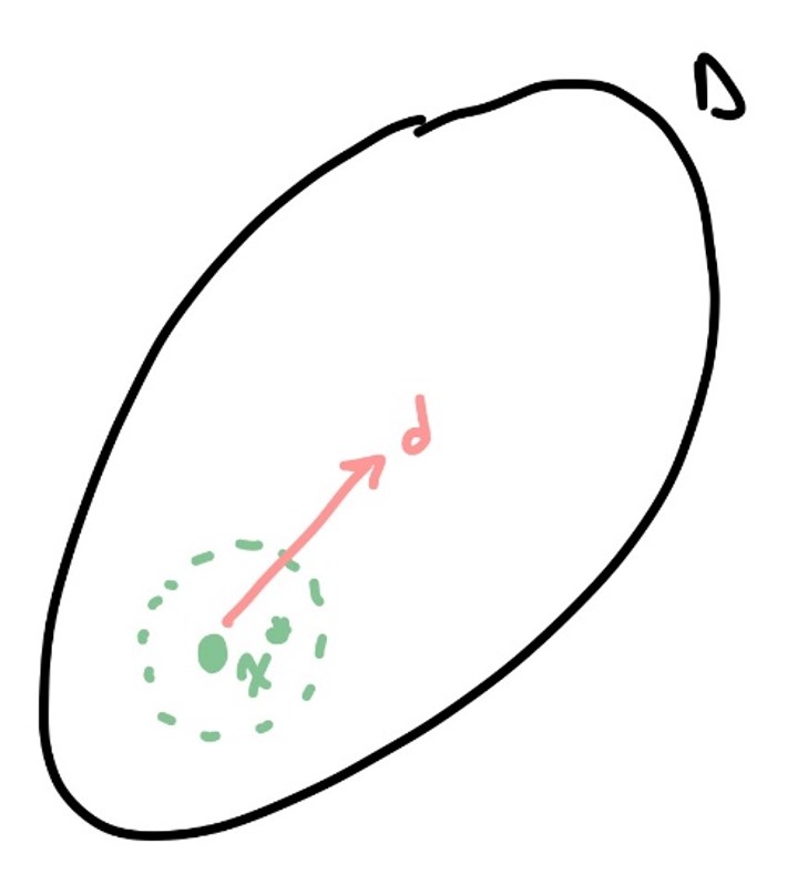 Let \(d\) be some vector in \(\mathbb{R}^n\), and \(\alpha\in\mathbb{R}\). Consider: